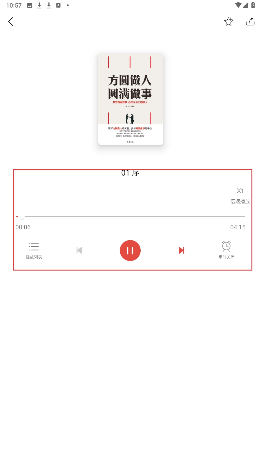 4、进入播放页,可调节倍速、定时关闭,还能切换播放列表,便捷收听。