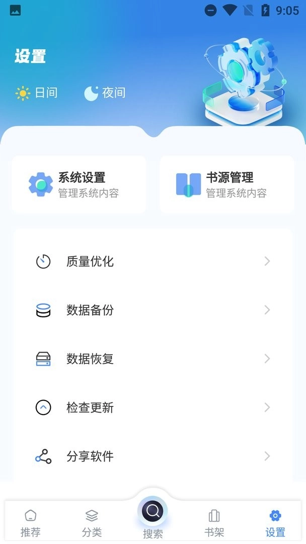 3、优化设置:支持日间/夜间模式切换,有效保护视力;可自定义翻页手势的操作方式;还能调整屏幕常亮时间,以契合不同环境下的阅读需求。