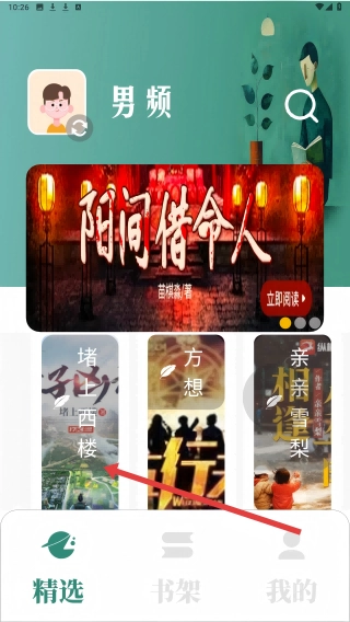 2、在男频推荐页面,点击感兴趣的小说,如《堵上西楼》进入详情页。