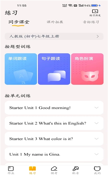 这款软件具备丰富的功能,涵盖各地区的教材资料,为用户打造便捷的在线学习环境。用户不仅能自由挑选训练模式,多维度巩固孩子的学习成绩,助力提升英语能力,还可在线进行模拟考试,及时检测学习成果。