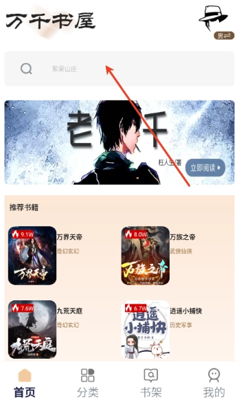 1. 于首页顶部的搜索栏中输入小说名称、作者或者关键词,就能实现快速查找。