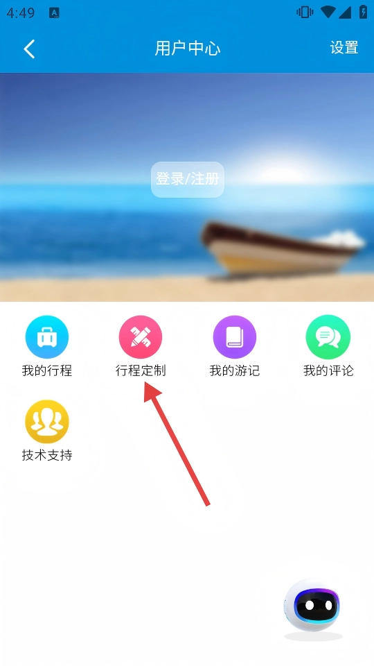 2、在用户中心页面,点击【行程定制】,进入行程定制页面。