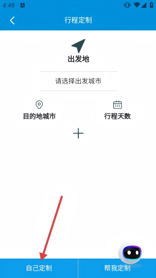 3、在行程定制页面,点击【自己定制】,进入用户登录页面。