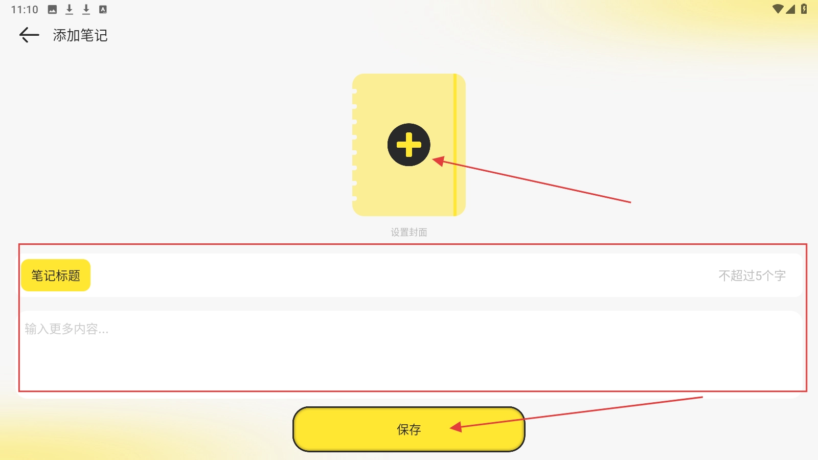 4、在【添加笔记】页,填标题输内容,点【保存】可记录笔记。