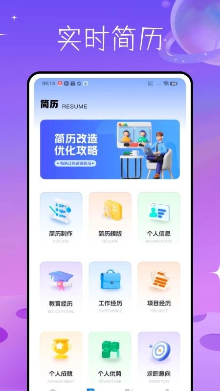 在应用内即可完成简历的编辑与制作,并且能够随时对简历进行优化,从而满足用户的使用需求。