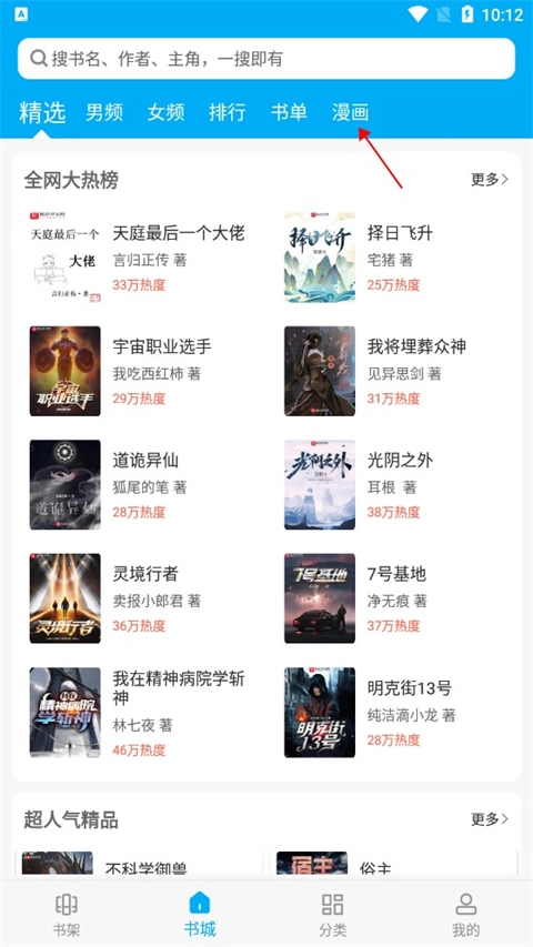 1、进入到软件之后在书城当中找到你想要的小说书籍。