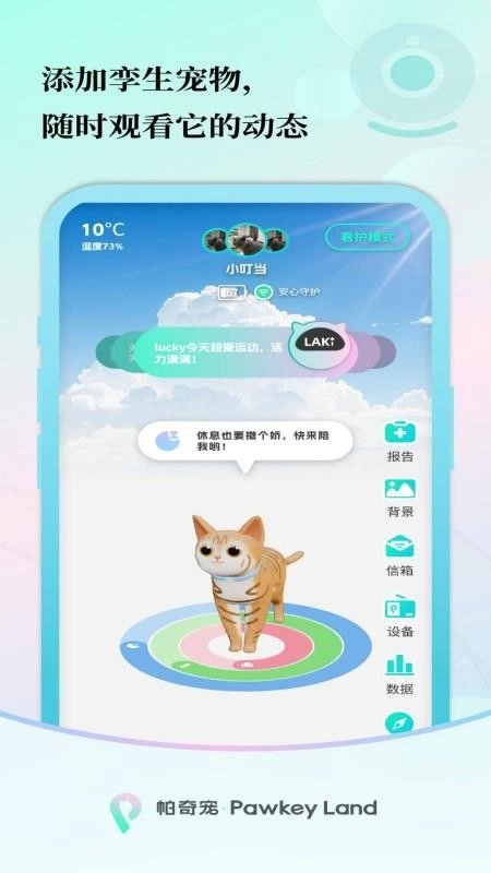 帕奇宠,一款专注于为用户打造线上智慧养宠体验的助手软件。在这里,用户能够实时添加自家宠物的详细信息,轻松打造宠物AI孪生形象,随时捕捉宠物的精彩瞬间,全方位观看宠物动态。软件还能帮你记录宠物每日的运动、睡眠及健康数据,并随时进行统计分析,让你精准掌握宠物健康趋势,养宠从此变得轻松简单。