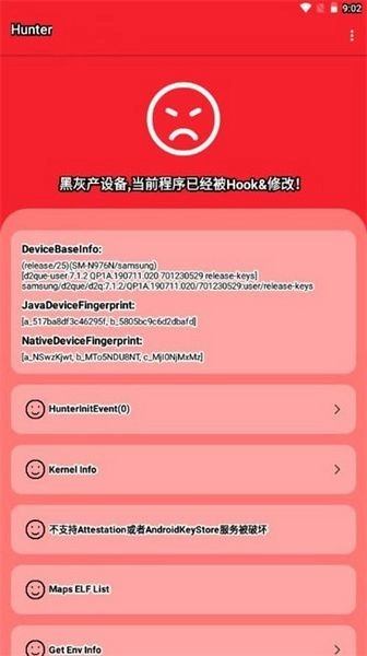 Hunter检测是一款具备丰富功能的移动Root环境检测软件。它集成了多项检测功能,能够自动监测移动环境,迅速识别诸如Root权限、Xposed框架、木马程序等对移动安全构成威胁的因素。一旦检测到危险情况,Hunter检测工具会自动发出警报。此软件从检测Root权限入手,这对于手机而言意义重大。而且该软件内存占用少,功能较为简洁,操作也极为便捷,欢迎感兴趣的用户前来了解!