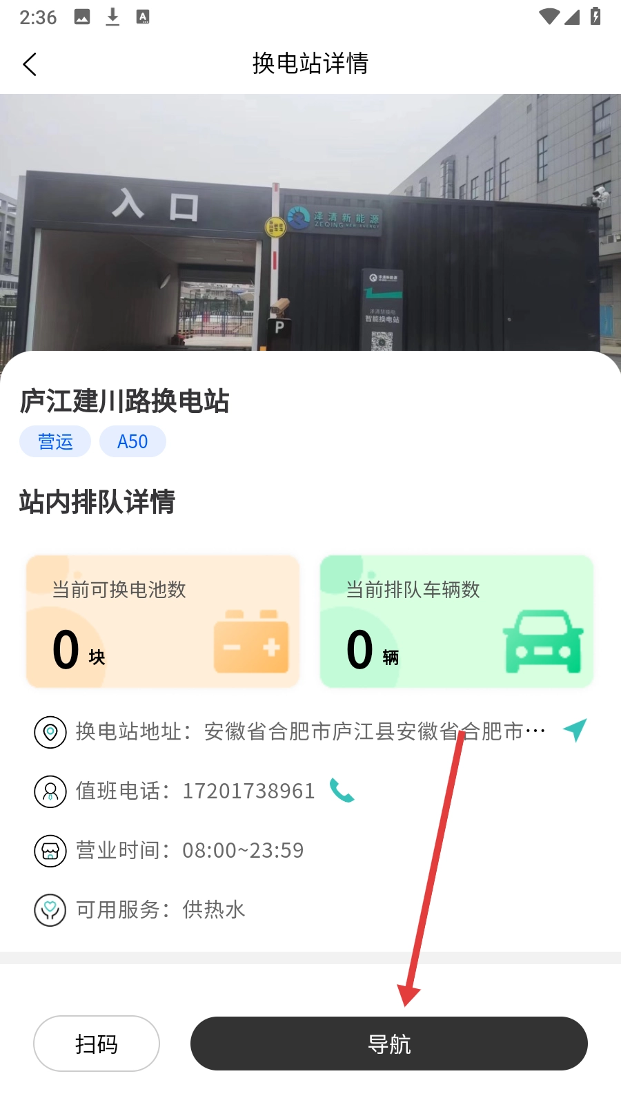 2、在站点页面选择【目标换电站】,进入换电站详情页面。