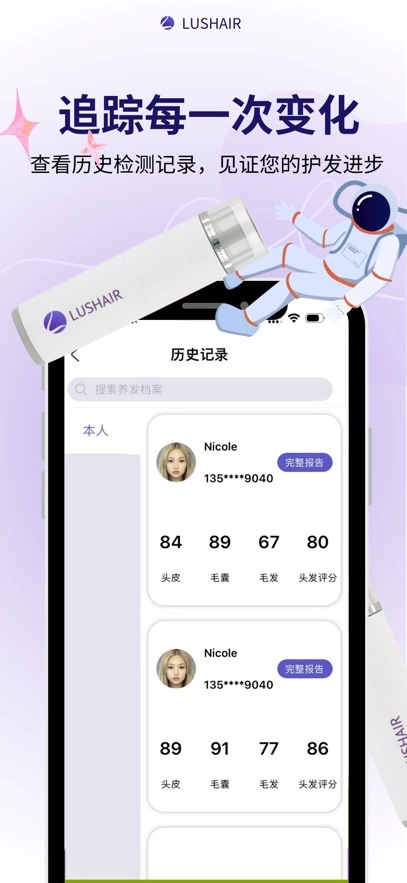 查看历史检测记录,见证您的护发进步