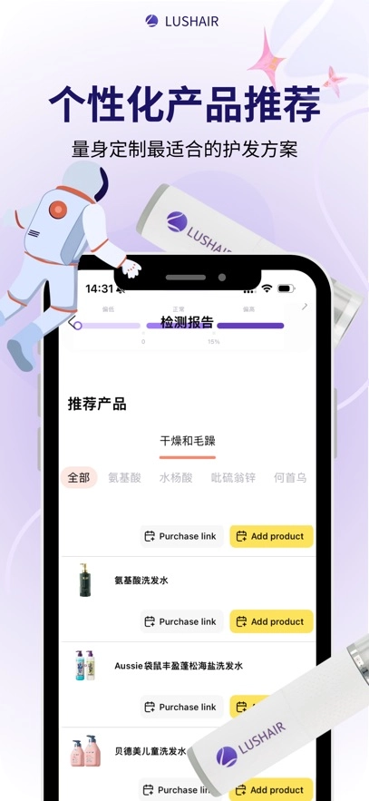 • 依据您的头发诊断结果,以及其他与头发相关的因素,像发型、发质、头皮状况等,为您量身定制个性化的头发护理建议。