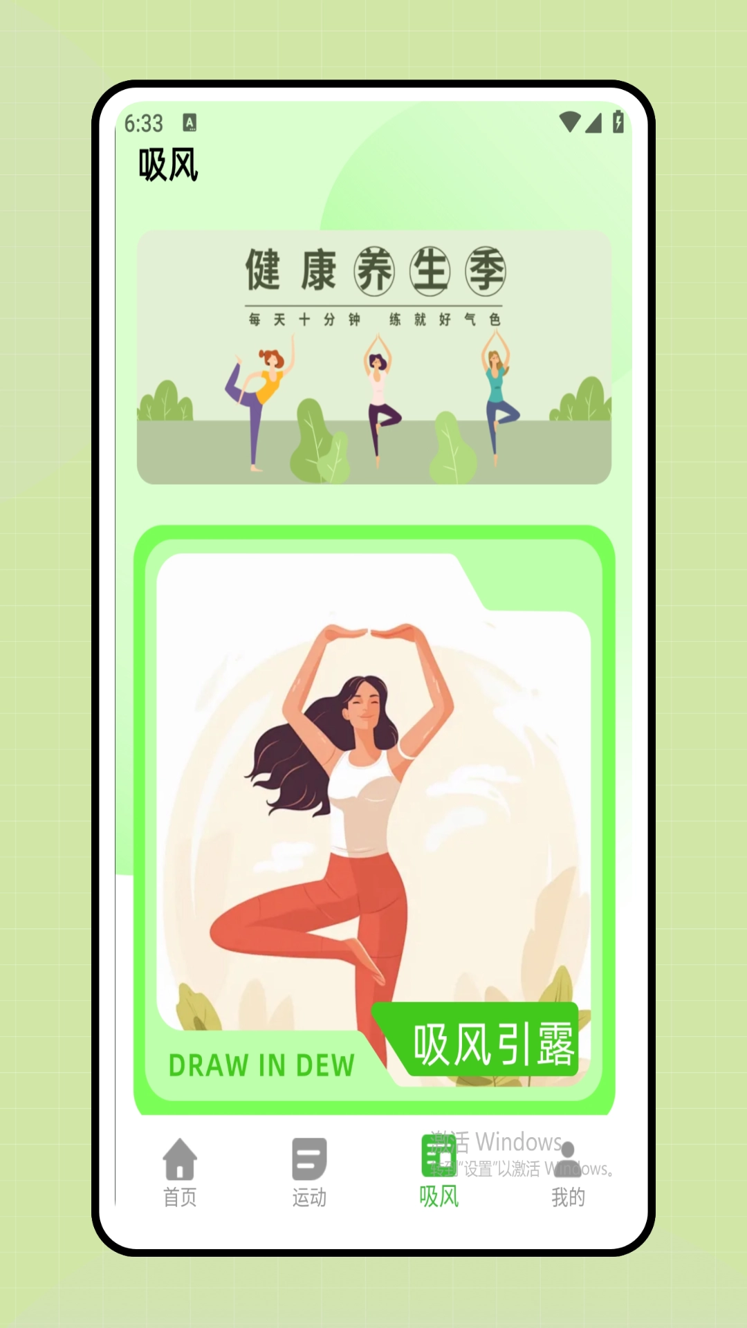 3、吸风引露养生功能,引导通过每日十分钟的养生活动调节生活步调,提升健康体验。
