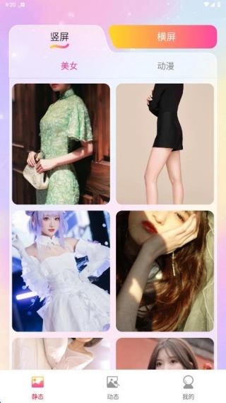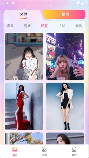 1、完成安装并进入后,在静态壁纸分类里能够找到竖屏、横屏等图片素材。
