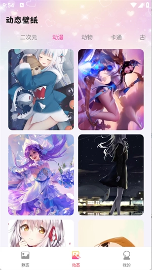 2. 动态壁纸页面包含二次元、动漫等各类主题素材,一键即可查看。