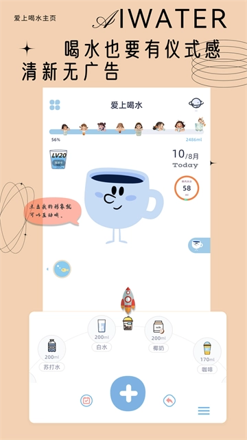 爱上喝水,是汉立科技(西安)有限公司精心打造的一款超好用的喝水提醒软件。它凭借趣味十足的深海鱼塘动画以及水杯互动等充满创意的形式,为每日饮水增添满满仪式感。不仅如此,这款软件还能精准记录饮水量、体重变化以及生理周期,并提供多维度数据分析,助力你科学地调整生活习惯。感兴趣的朋友,欢迎来本站体验使用。