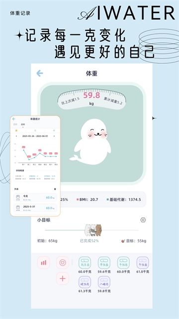 没有广告干扰的喝水时间提醒与记录助手,搭配体重日记、经期跟踪功能,是你贴心的健康伴侣。这里有生动有趣的交互动画,为记录增添满满仪式感。多维度且详尽的历史记录与趋势分析,帮你深入了解自己的身体。还有趣味十足的深海鱼塘,以及可爱的水杯动画饮水闹钟,助力你轻松养成每日喝水的良好习惯。