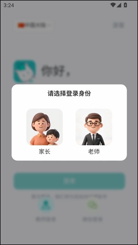 1、打开软件,我们需要选择合适的身份进行软件登录操作。