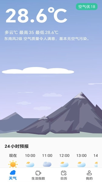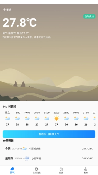 3、App界面会依据不同的天气状况,自动切换与之对应的背景图片和动态效果。比如在晴天时,会呈现出晴朗的蓝天白云背景;而在雨天,就会出现雨滴下落的动态效果。