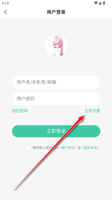 4. 请依据软件要求输入下述信息,随后勾选“我同意心悦社区的《用户协议》和《隐私条款》”,再点击“立即注册”便可。