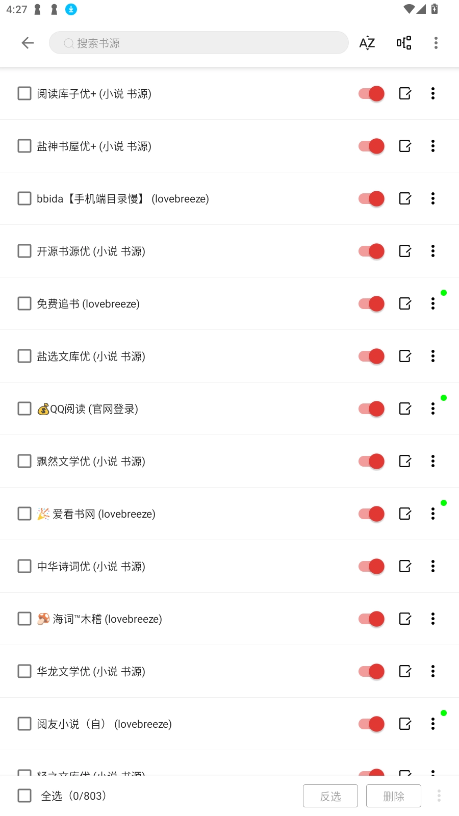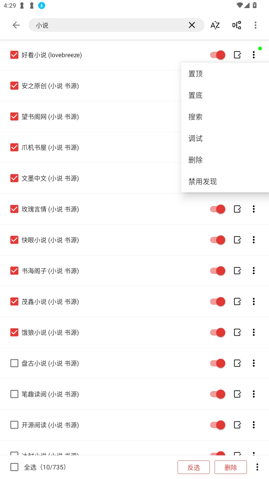 2、勾选喜欢的书源。
