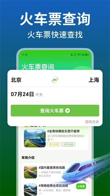 同时,为你详细呈现火车的出行流程,助力众多首次乘坐火车的用户明晰相关步骤。