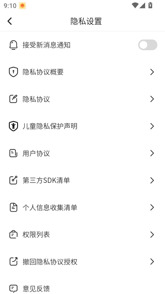 4. 当进入菜单页面,便能看到“接受新消息通知”模块处设有滑动开关。