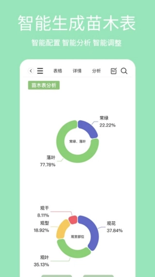 4、具备苗木表智能生成功能,根据项目场景与需求,一键即可生成苗木表以及分析图表。