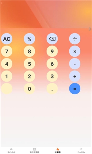 3、基础计算器具备多种运算功能,涵盖加、减、乘、除、百分比计算,还设有AC清零功能。