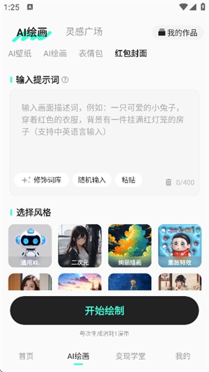 3、在AI绘画界面,你能够凭借输入提示词来开展绘画创作,可随意挑选自己感兴趣的提示词加以使用。