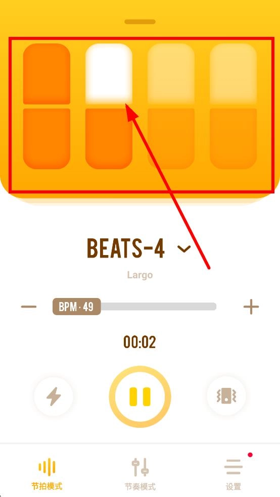 2、播放后,上方的节拍块会依次亮起,显示节拍节奏。