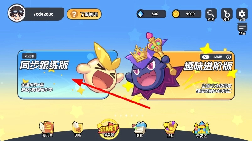 1、打开闯词王国,点击同步跟练版,进入学习计划页。