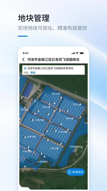 3、进入地块管理板块,可智能新增地块,便于能高效管理;