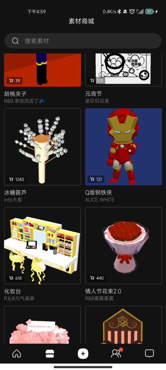 5、点击<>可以切换不同的场景,场景的不同,所提供的的资源也不一样,资源丰富多彩,任由你使用。