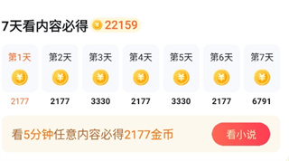 2、7天看内容,看5分钟任意内容必得2177金币;