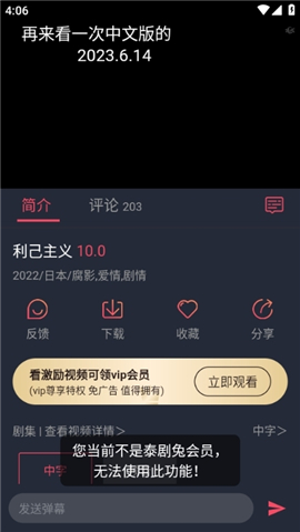 4、支持评论、发弹幕以及投屏等操作。点击剧集即可选择具体集数。(注:系统会对评论进行审核,若使用不文明用语,账号将被封禁。)