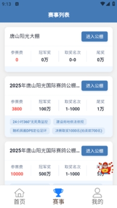 高效的赛事服务:通过本应用,用户可以轻松报名参赛、查看赛事安排、实时跟踪比赛进程,确保每位鸽友都能及时参与和了解赛事情况。
