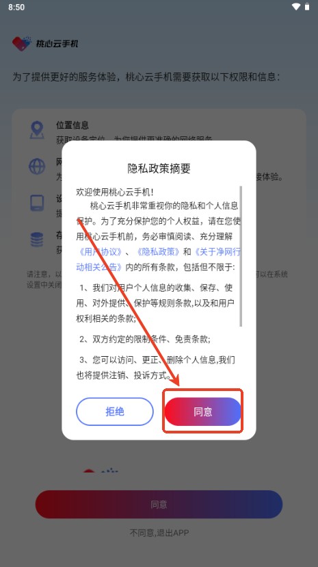 2、进入软件后同意用户隐私政策;