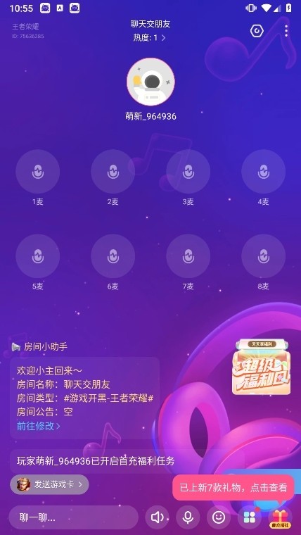 支持组队开黑多款热门电竞游戏,像dnf、王者荣耀、英雄联盟、和平精英等,同时提供语音连麦功能,多人连麦流畅不卡顿。