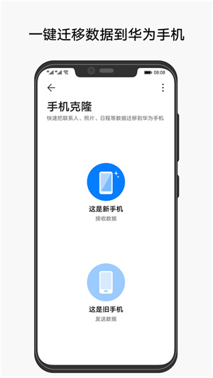 想从其他品牌换成华为手机?很容易,下载手机克隆 App,不受品牌及系统限制3,资料一键跨系统、跨平台互传,没有障碍。