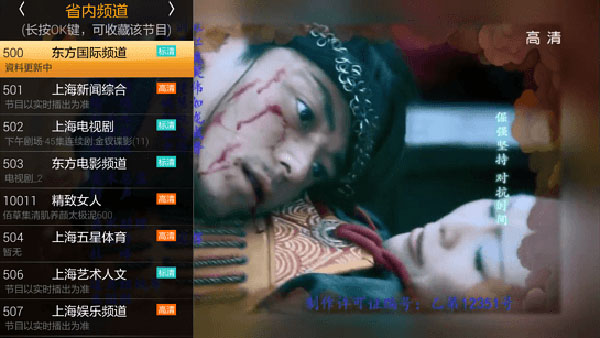 7、点击节目分类后,可以直接在播放页面进行频道切换,不用返回主菜单,很方便吧。
