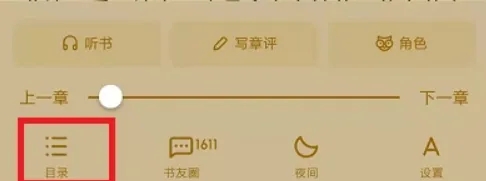 在小说阅读界面中,点击中间屏幕位置,就可以唤出阅读设置众多功能,然后可以看到左下角有【目录】,点击打开。