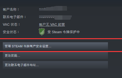 2、进入设置界面,点击管理steam令牌账户安全设置。