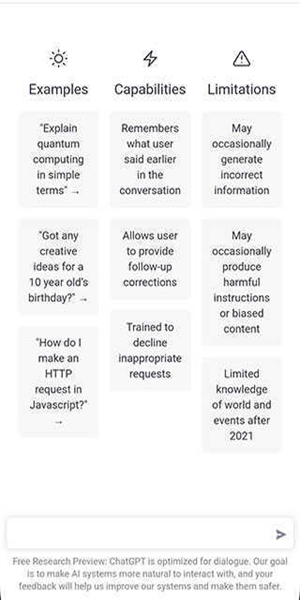 想必大家都听说过ChatGPT人工智能免费版吧。它是一款功能极为强大的AI智能聊天软件,具备文章写作、代码生成、图片生成等诸多功能,用户还能借助它进行文字翻译、提出疑问、查询攻略等操作。ChatGPT必定会为用户给出优质且精准的答案,用户随时随地都能与ChatGPT人工智能免费版展开互动,不受任何限制。