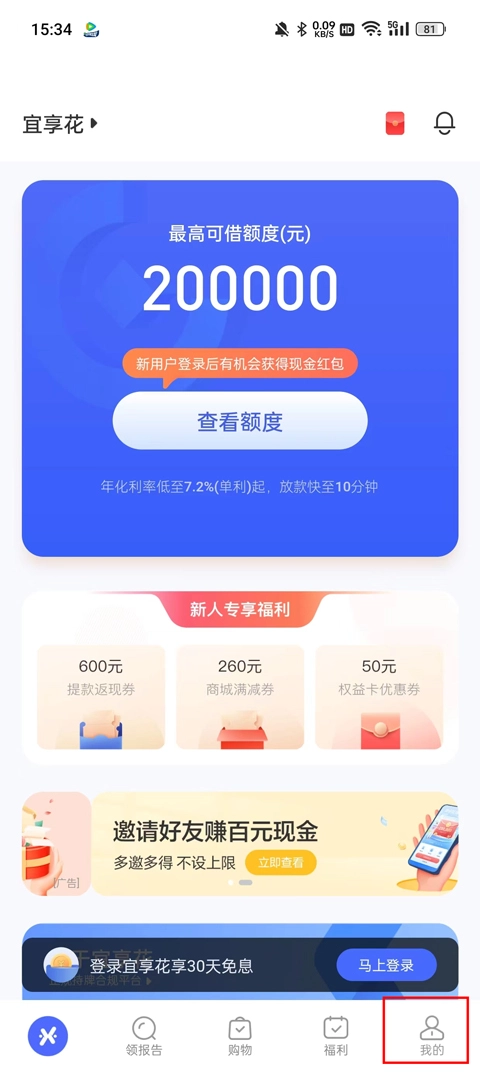 ①方式一:登录宜享花,进入【我的】 - 【我的应还】。