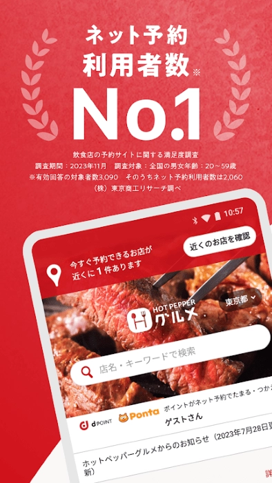 通过“辣椒美食餐厅预订与优惠券搜索应用程序”,您在进行网上预订时能够赚取ponta积分与d积分。