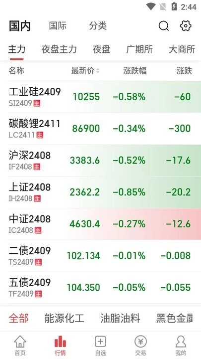 - 提供原油、黄金等国内上市的所有期货品种交易行情;