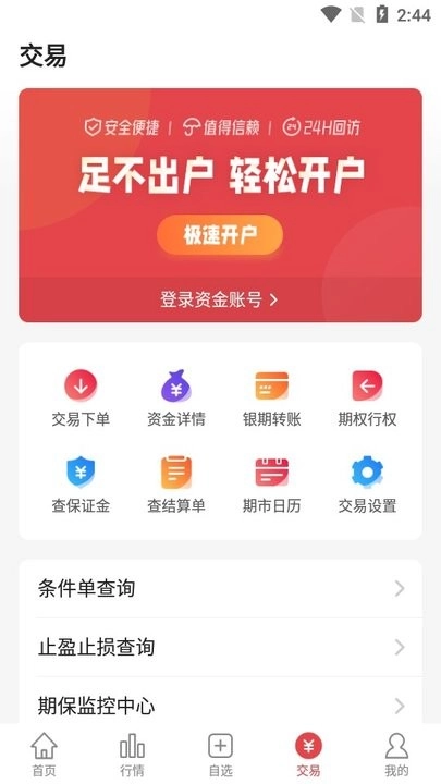 期货开户通软件,专为广大期货用户打造全方位贴心期货服务。软件囊括国内当下所有上市期货品种,实时更新交易行情,提供便捷的银期转账服务,全力保障每位交易用户的资金安全。有需求的小伙伴们别再犹豫,赶紧行动起来使用吧!