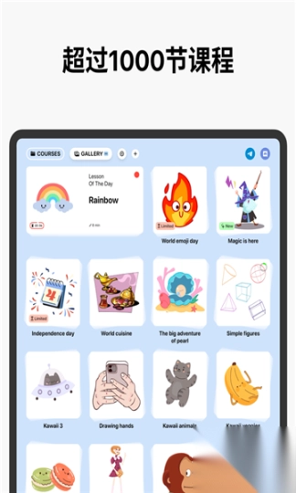 我们1000多个教程里的每一课,都被细分成10至30个简单步骤,助力用户学会绘画、上色、描摹,掌握各类技巧。