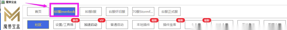 1. 在顶部菜单中选择您正在游玩的区服,社区功能、插件、宏命令、WA命令等都会依据您所选的区服相应发生变化。