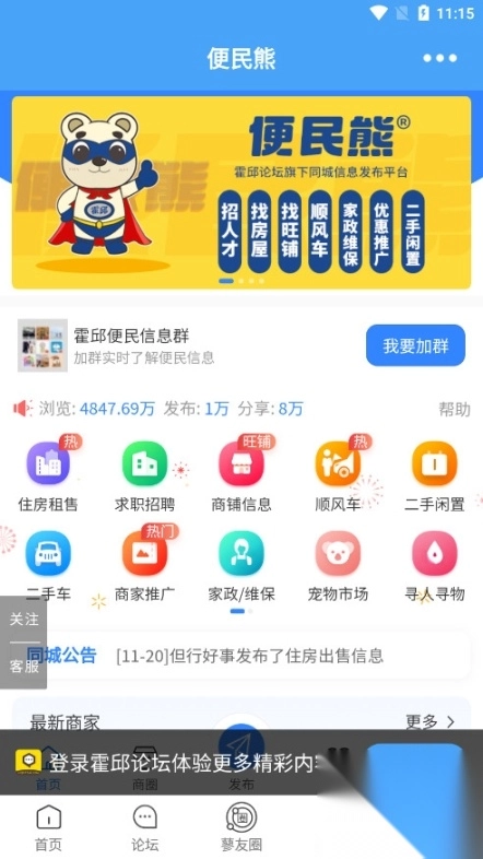 《霍邱论坛》,霍邱人的专属本地生活服务平台。它集民生资讯、同城服务、招聘求职等各类信息于一身。实时曝光城市管理典型案例,为守护家乡环境助力;便民熊分类信息,一键解决租房、二手交易等需求。20万粉丝矩阵,保障信息高效传播。来这里,感受霍邱的温度,发现霍邱的活力!